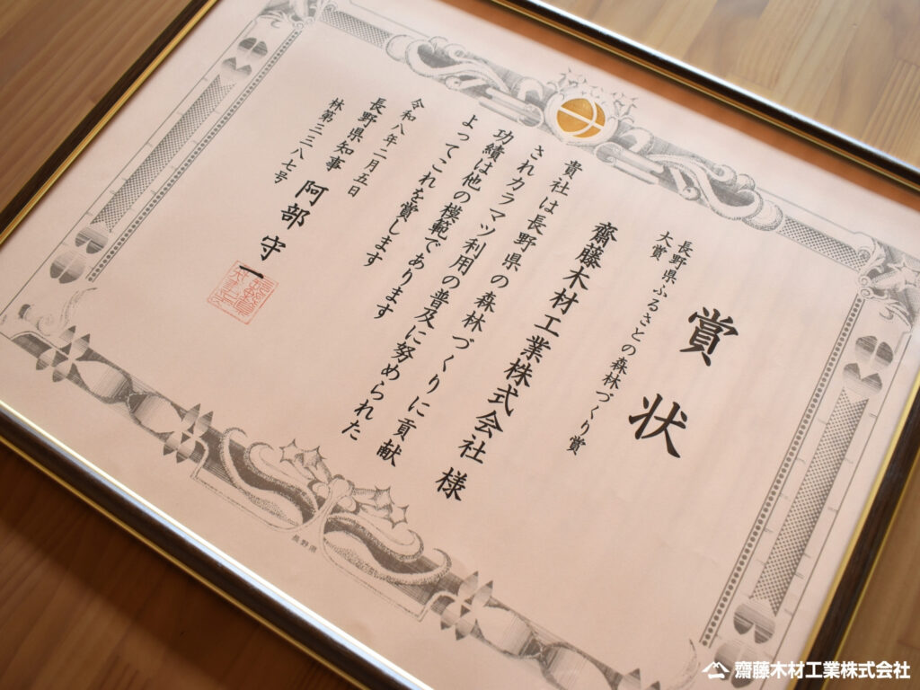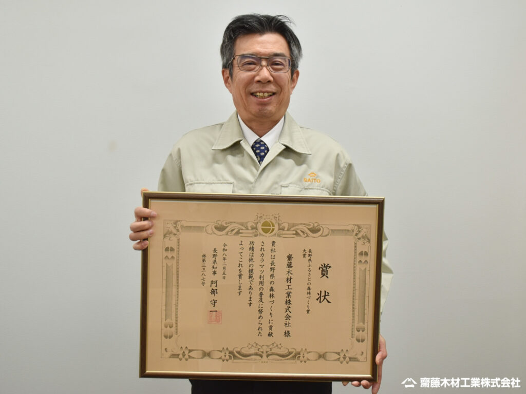 この度、齋藤木材工業株式会社(以下「当社」)は「令和7年度 ふるさとの森林づくり賞」 において最高位となる大賞 を受賞いたしました。