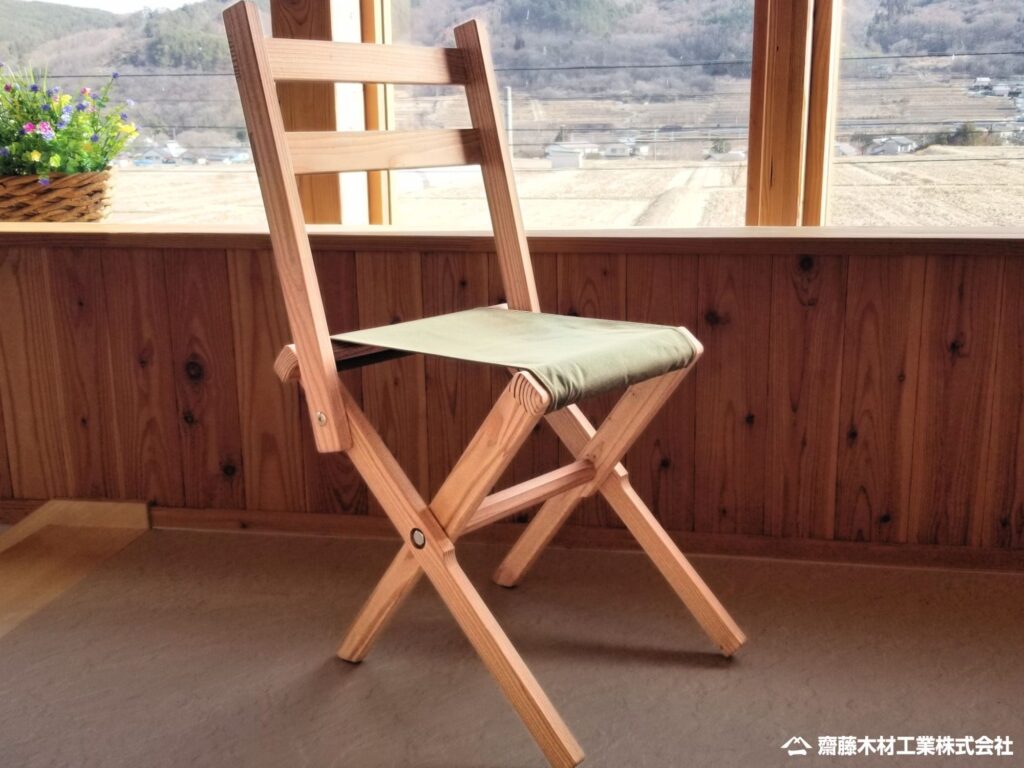 そこで当社は、構造用集成材づくりで培った技術を活かし、折りたたみ式チェア「Flexible -LX-chair」を開発しました。特長は、折りたたみ可能。持ち運びやすい。コンパクトに収納できる点です。