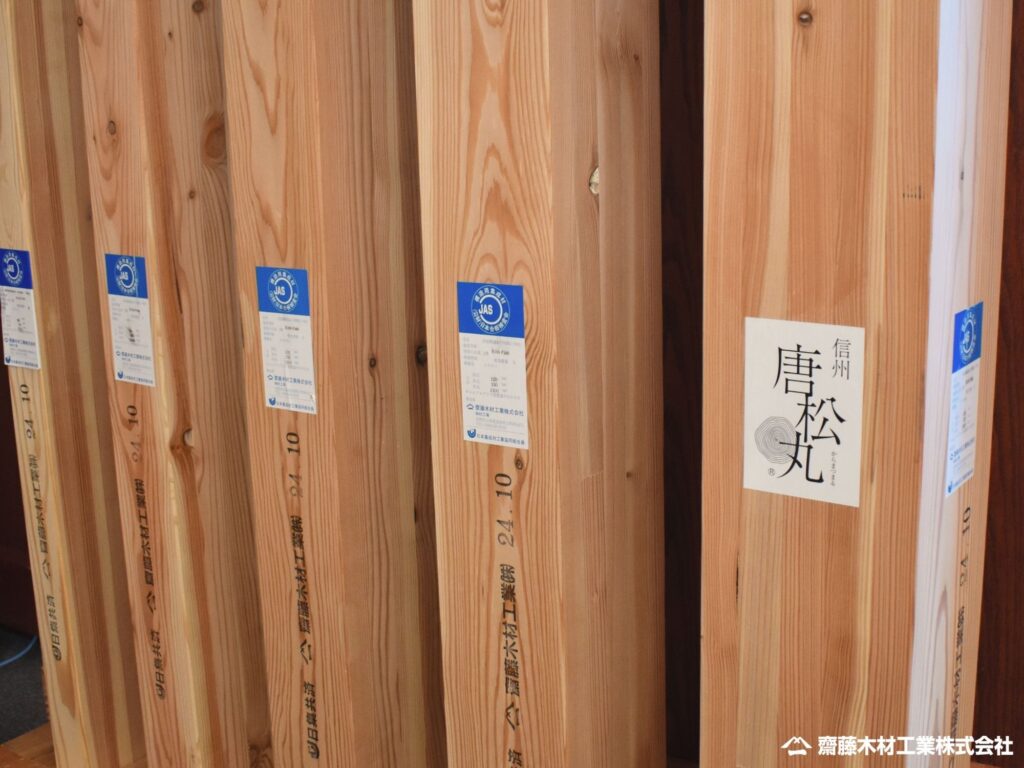 写真:長野県産カラマツを活用した構造用集成材の自社ブランド 信州『唐松丸®』