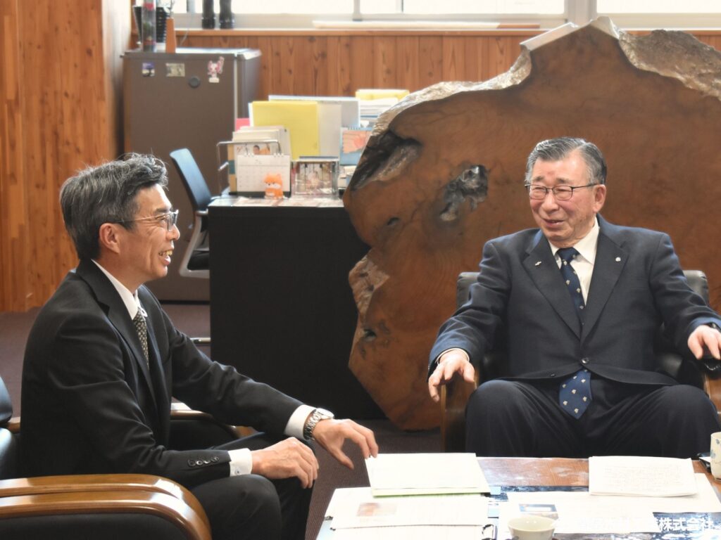 羽田町長からは、長和町の森林資源を活かした事業活動や林業振興への長年の貢献に対し、温かいお言葉をいただきました。また、今後も連携しながら持続可能なまちづくりを進めていきたいとのお話をいただきました。
