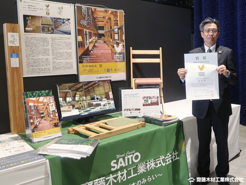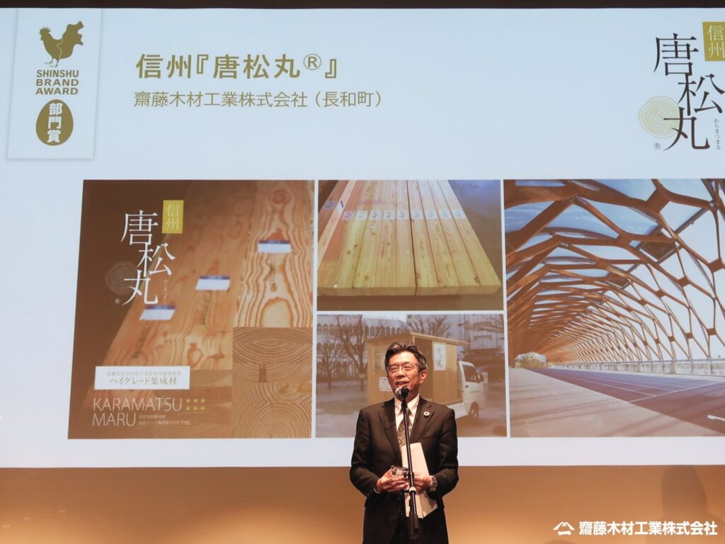 この度、齋藤木材工業株式会社(以下「当社」)が展開する、構造用集成材ブランド信州『唐松丸®』は、信州ブランドアワード2025において、「しあわせ信州部門」部門賞を受賞いたしました。